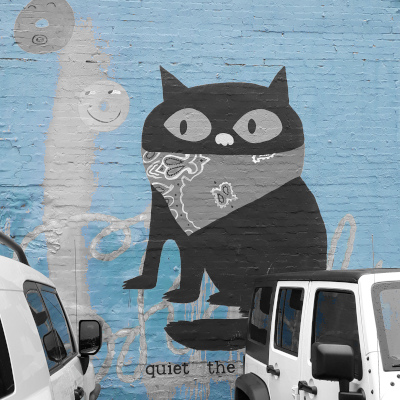 This chubby fellow keeps an eye on a parking lot at Guadalupe Street in Austin, TX.