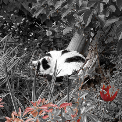 This cat is taking a nap! I love taking naps but there are only a few chances to take them, like on weekends. It was late afternoon and she was all snuggled up in a small garden in front of a house. She just couldn’t be bothered to look at passers-by.